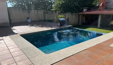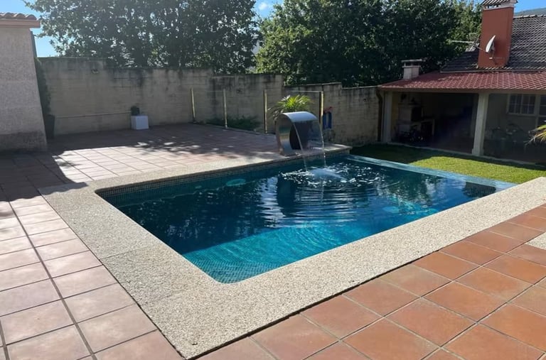 Lujoso chalet familiar con piscina climatizada,cocina equipada, barbacoa, servicios de streaming (Netflix, YouTube Premium, HBO, Prime, Disney+), cama queen size, sofacama, baño con ducha adaptable, aire acondicionado, calefacción, 1 plaza de parking