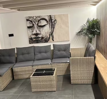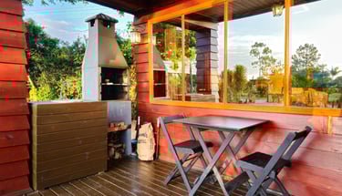 Cómoda tabaña tipo rural con jacuzzi tipo hidromasaje privado, barbacoa privada, servicios de streaming (Netflix, YouTube Premium, HBO, Prime, Disney+), cama queen size, baño con ducha adaptable, aire acondicionado, calefacción, 1 plaza de parking