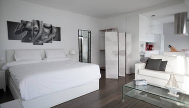 Lujoso piso tipo estudio con jacuzzi tipo hidromasaje, servicios de streaming (Netflix, YouTube Premium, HBO, Prime, Disney+), cama queen size, baño con ducha adaptable, aire acondicionado, calefacción, 1 plaza de parking