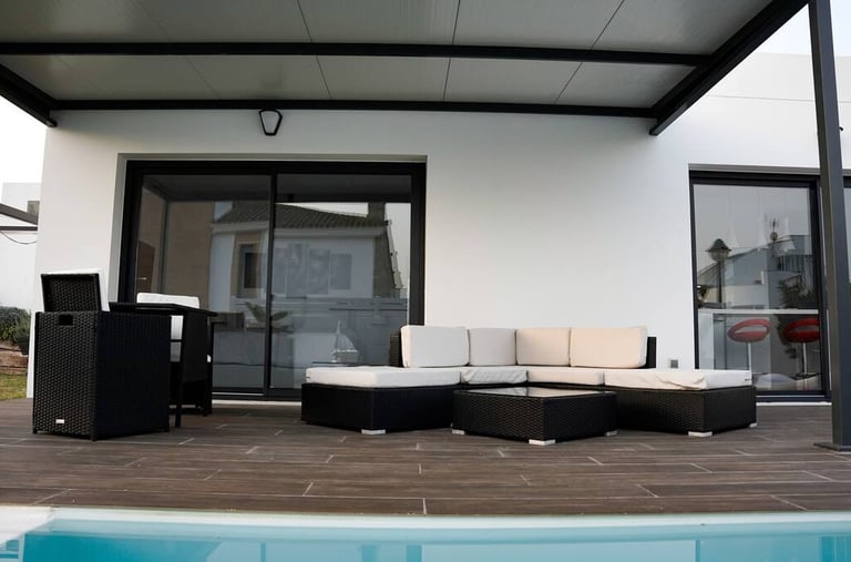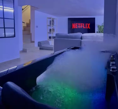 Lujoso chalet para parejas o familiar, piscina privada, barbacoa, cocina equipada, servicios de streaming (Netflix, YouTube Premium, HBO, Prime, Disney+), cama queen size, sofacama, baño con ducha adaptable, aire acondicionado, calefacción, 1 plaza de parking