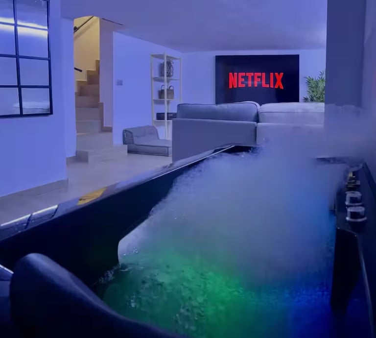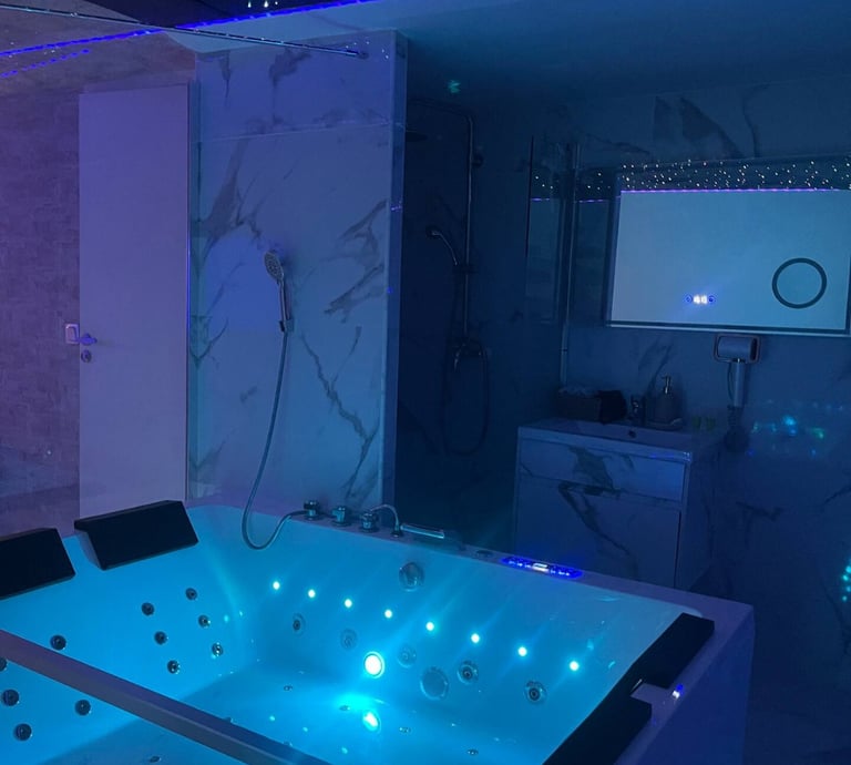 Lujoso piso con jacuzzi tipo hidromasaje privado,cocina equipada, servicios de streaming (Netflix, YouTube Premium, HBO, Prime, Disney+), cama queen size, sofacama, baño con ducha adaptable, aire acondicionado, calefacción, 1 plaza de parking
